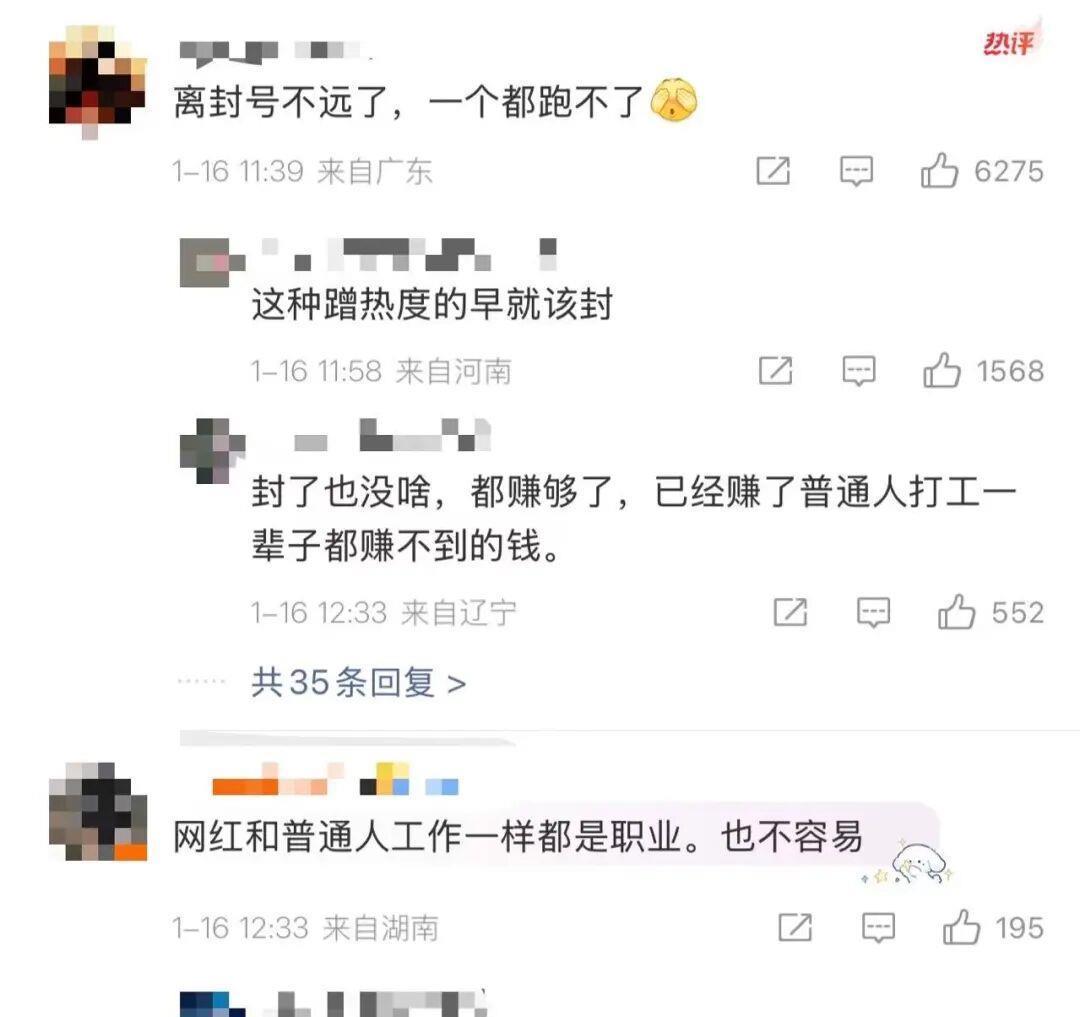 对此,网友议论纷纷,“离封号不远了,一个都跑不了”“网红和普通人工作一样都是职业,也不容易”“这种网红再装穷能不能封杀了”。